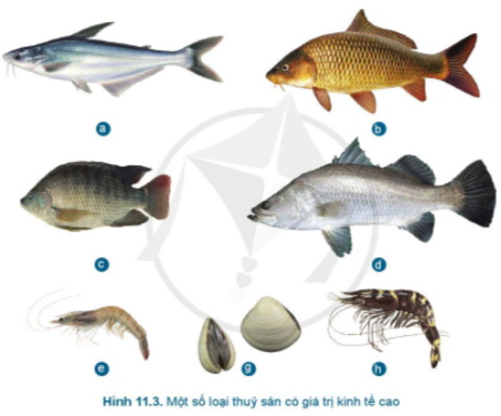 CH: Dựa vào nội dung mục 2 và quan sát Hình 11.3, em hãy gọi tên và nêu đặc điểm của từng loại thủy sản có trong hình: