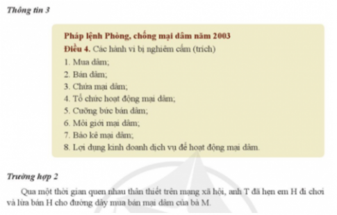 a) Từ thông tin 3, em hãy liệt kê các hành vi vi phạm pháp luật của anh T và bà M ở trường hợp 2.