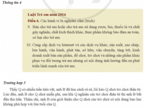 Em hãy đọc các thông tin, trường hợp dưới đây và trả lời câu hỏi