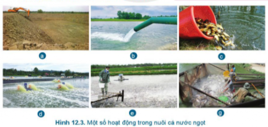 Trả lời: Cách làm:Bước 1: Quan sát hình 12.2 và 12.3 để hiểu các hoạt động nuôi cá nước ngọt trong ao.Bước 2:... Xem hướng dẫn giải chi tiết