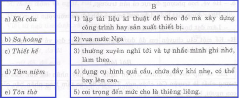 3. Chọn lời giải từ cột B phù hợp với từ ngữ ở cột A