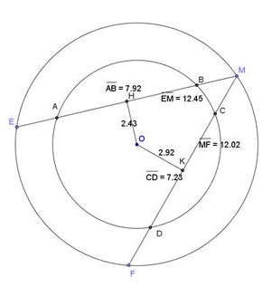 Cho hình 70 trong đó hai đường tròn cùng có tâm là O. Cho biết AB > CD .