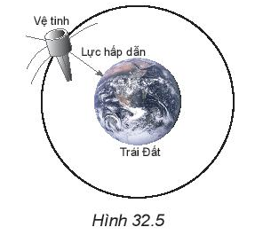 Câu hỏi 2. Hình 32.5 mô tả một vệ tinh nhân tạo đang quay quanh Trái Đất.