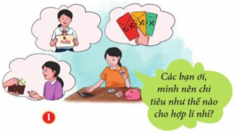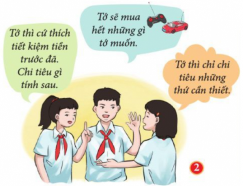 a) Em hãy nhận xét cách sử dụng tiền của các bạn học sinh trong hình ảnh 2. Theo em, cách sử dụng tiền nào hợp lí? Vì sao?