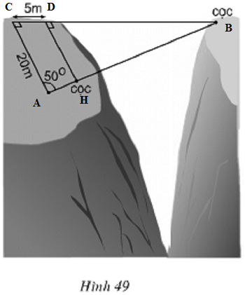 Tìm khoảng cách giữa hai cọc để căng dây vượt qua vực trong hình 49 ( làm tròn đến mét ) .