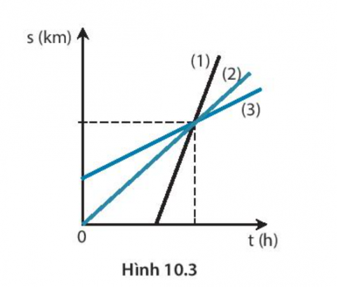 10.5. Đồ thị quãng đường - thời gian ở Hình 10.3 mô tả chuyển động của các vật 1, 2, 3 có tốc độ tương ứng là vị, Vạ, va, cho thấy