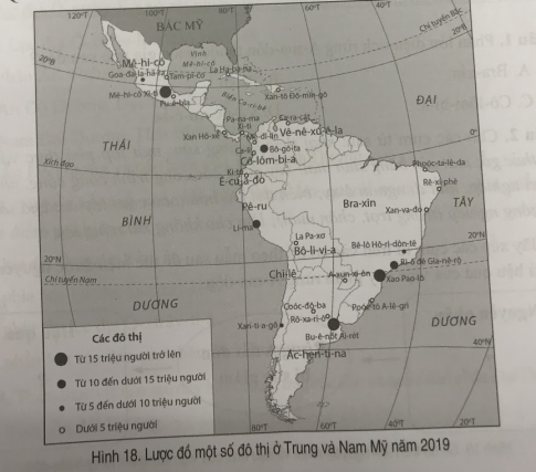 b) Nhận xét về sự phân bố các đô thị ở Trung và Nam Mỹ.