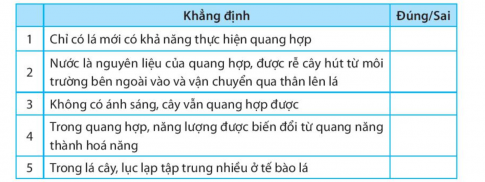 Giải bài tập sách bài tập (SBT) bài 22: Quang hợp ở thực vật