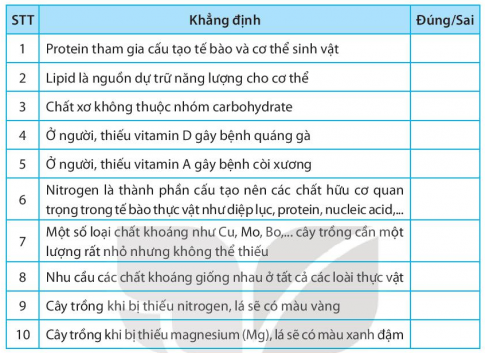 Giải bài tập sách bài tập (SBT) bài 29: Vai trò của nước và chất dinh dưỡng đối với sinh vật