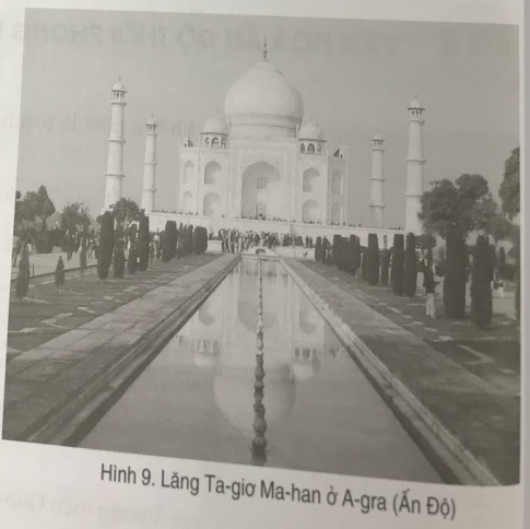 Câu 6. Quan sát hình 9 và dựa vào hiểu biết của bản thân, hãy giới thiệu ngắn gọn về lăng Ta-gio Ma-han theo những gợi ý sau: