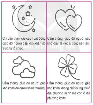 - Em sẽ cùng với người thân, bạn bè làm gì để cảm thông, giúp đỡ người gặp khó khăn?