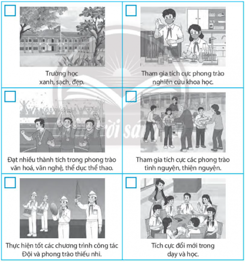 BÀI TẬP 1: Đánh dấu tích vào những tiêu chí của lớp học xanh, sạch, đẹp mà nhóm em đã đạt được.