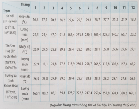 NHIỆT ĐỘ, LƯỢNG MƯA TRUNG BÌNH CÁC THÁNG TRONG NĂM CỦA MỘT SỐ TRẠM KHÍ TƯỢNG Ở VIỆT NAM