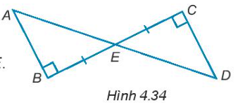 4.32. Cho các điểm A, B, C, D, E như Hình 4.34. Biết rằng E là trung điểm của BC, chứng minh rằng $\Delta ABE$ = $\Delta DCE.$